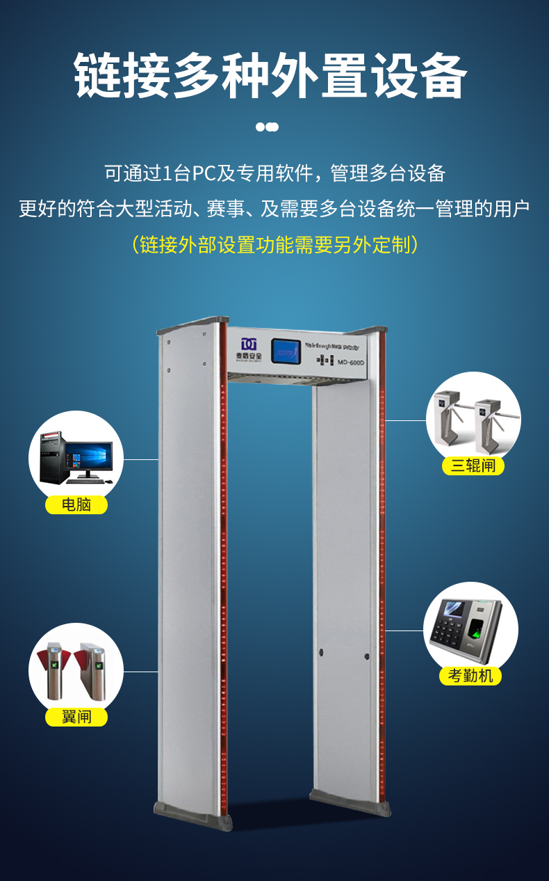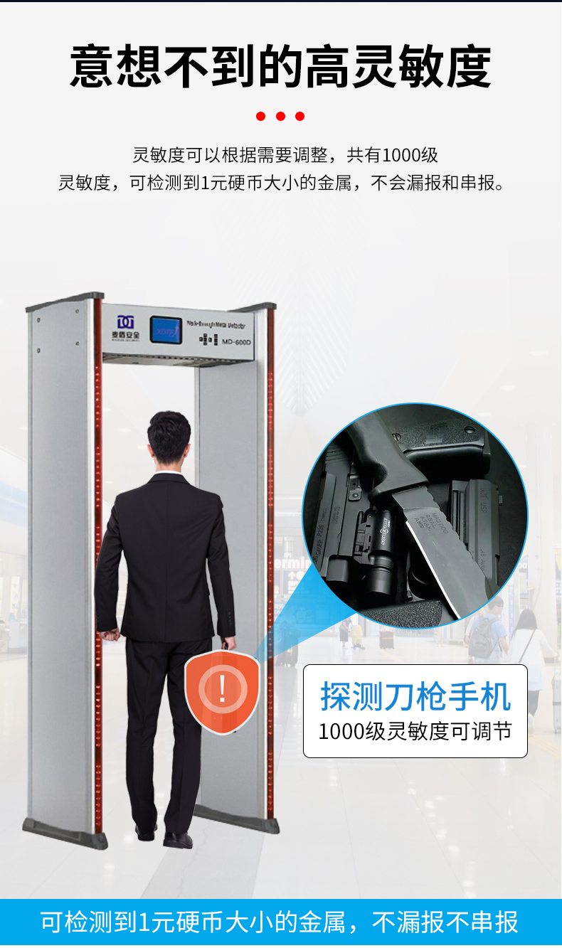 可以快捷、有效地檢測出通過人身上暗藏的管制dao具、q支等違禁器械以及電子元器件,銅、錫、鋅等各種貴重金屬,起到安全、企業(yè)防盜作用。